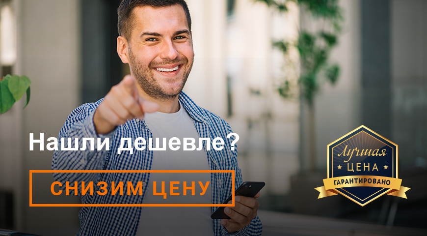 Мы готовы бороться за каждого покупателя не только отличным качеством товара, но и рублём! Снизим цену при покупке в розничных магазинах или компенсируем разницу при оплате онлайн.